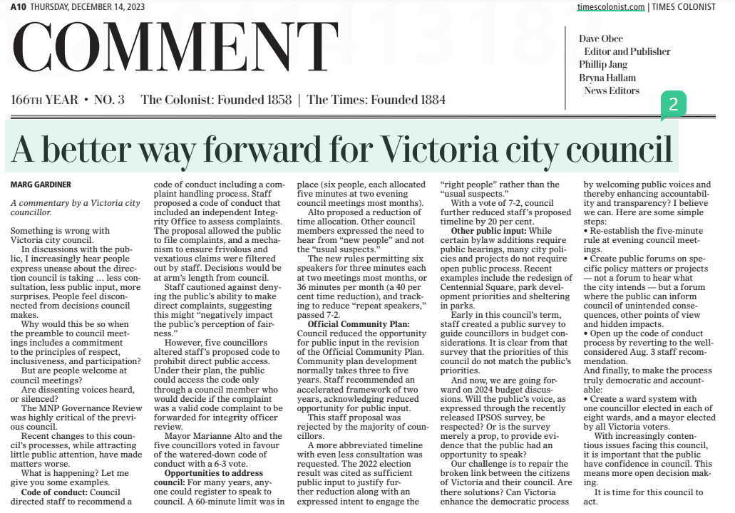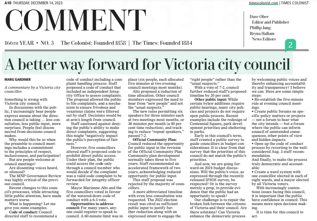 Marg Gardiner’s Op-Ed was published in the Times Colonist on 14th December 2023