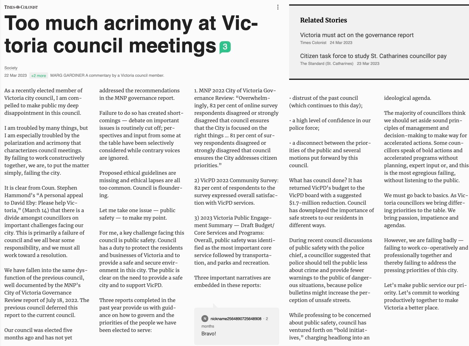 Times Colonist Op-ed 22nd March 2023